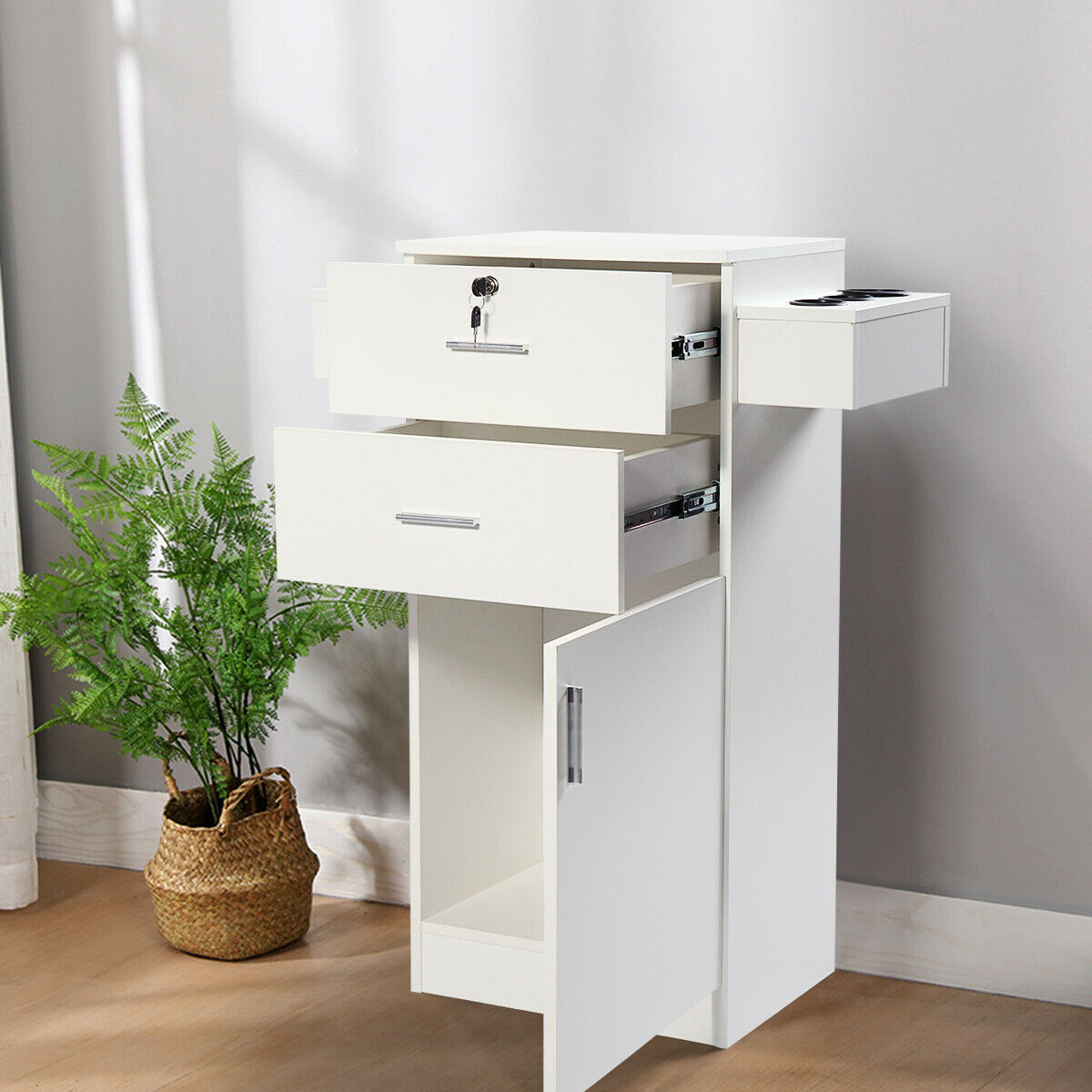 Hair dryer holders keep home vanities and professional salon booths tidy and safe. Choose a hair dryer holder with ample room for all of your hair styling tools. One of the most underutilized areas of your bathroom is the inside of a vanity door. Salon stations storage cabinet beauty salon equipment with 2 hair dryer holder feature:?premium material?: Two pullout drawers & one cabinet at the bottom tools & accessories storage;